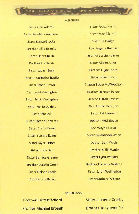 Members of Shiloh Baptist Church Choir who have passed away but thier voices will never be silented...